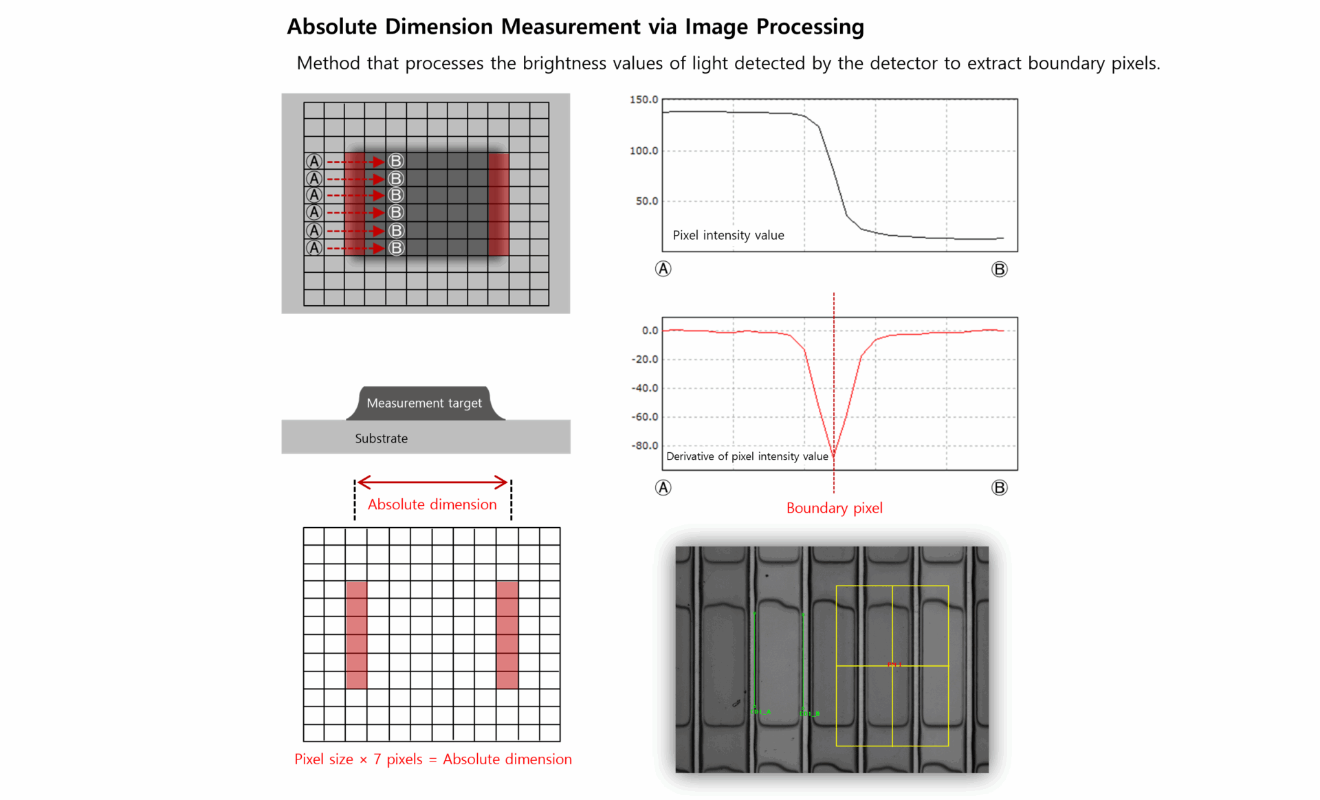 通过检测器获取亮度值进行信号处理,以提取边界像素