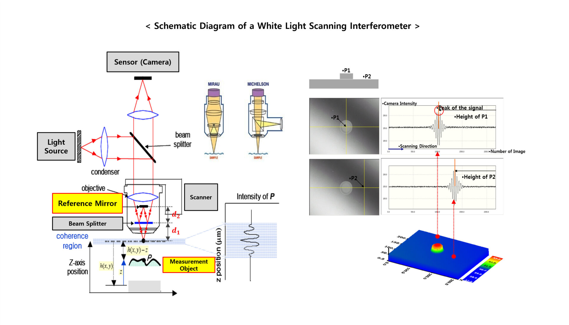 すなわち、測定ミラー(Moving mirror)と基準ミラー(Fixed Mirror)間の距離差(d1-d2)が光の半波長(λ/2)の整数倍になる場合に強め合う干渉が発生